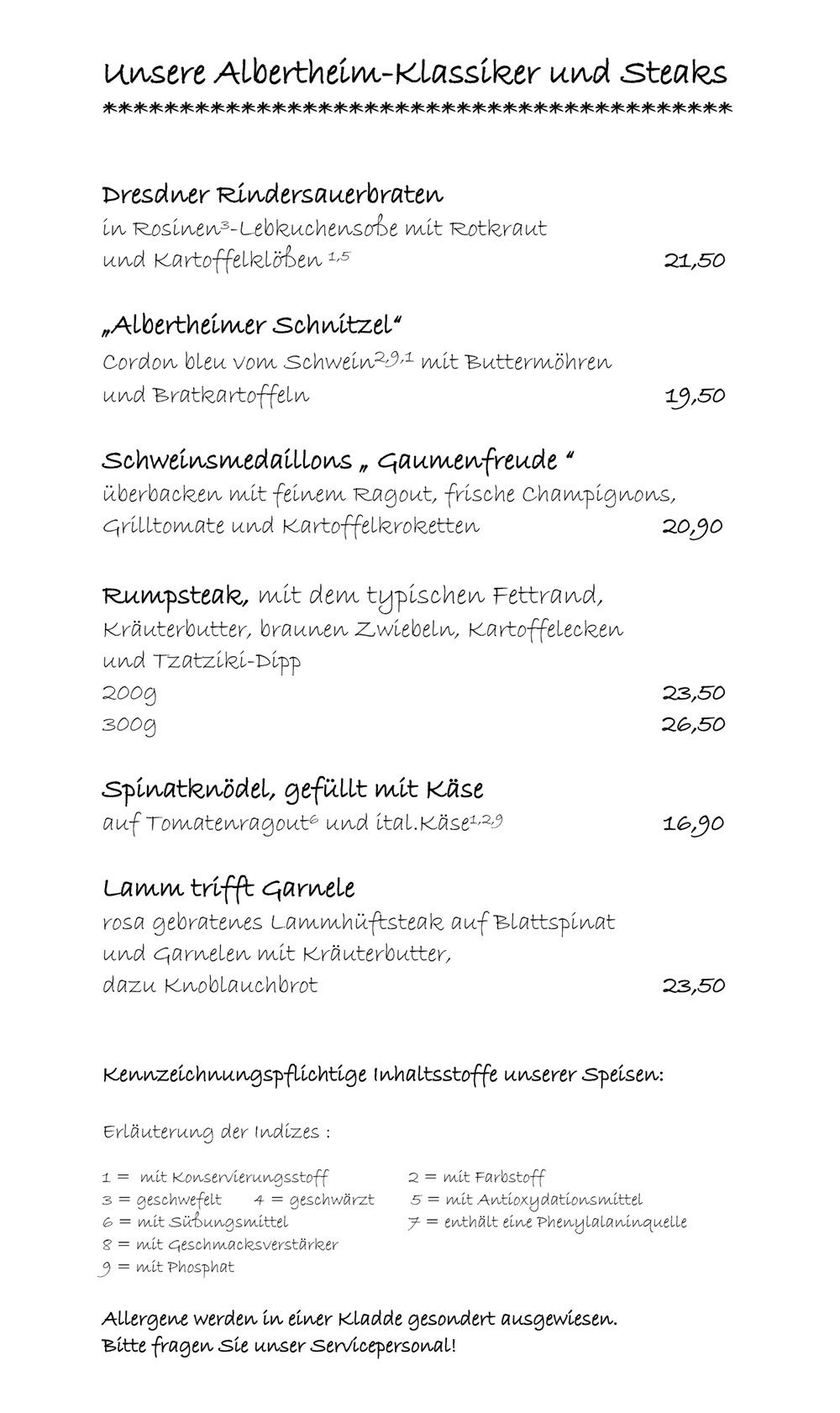 Unsere Speisekarte des Restaurant Albertheim in Freital-Pesterwitz, immer vielfältig und abwechslungsreich.